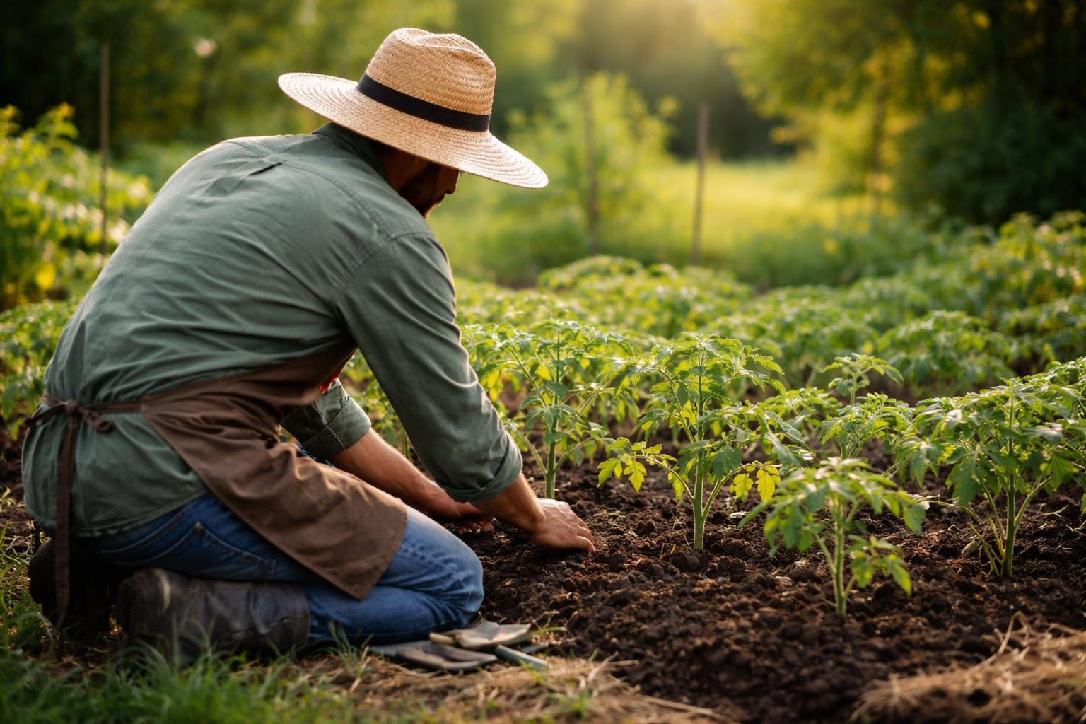 jardinier-chapeau-paille-plants-tomates